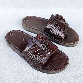 Dép nam da cá sấu 2 quai ngang màu nâu