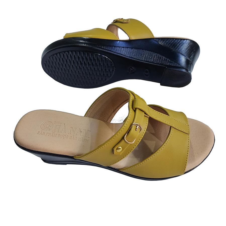 Dép nữ đế xuồng 5cm da bò thật