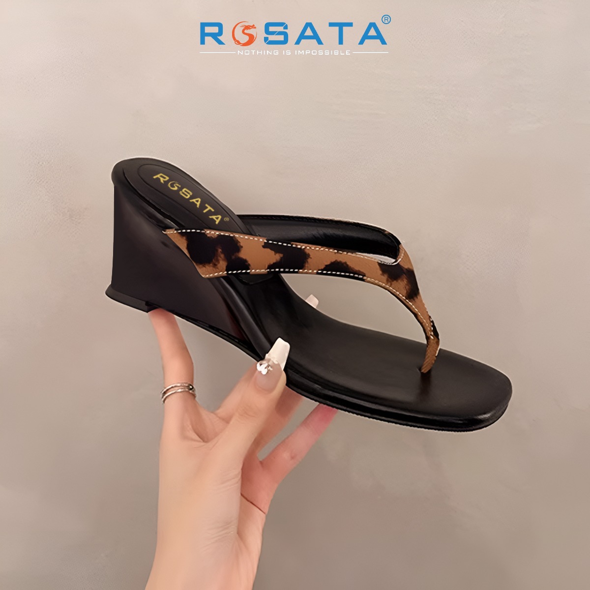 MÔ TẢ SẢN PHẨM: Dép nữ xỏ ngón, quai xuôi, đế xuồng ROSATA RO737 - 7p - Đen - BKSTORE