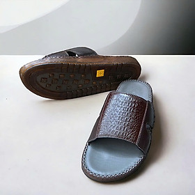Mô tả: Tên sản phẩm: Dép nam quai ngang da cá sấu đế cao 3cm 2 loại móng, trơn 2 màu nâu đen DCS200 Chất liệu: Chất liệu da cá sấu có móng và loại