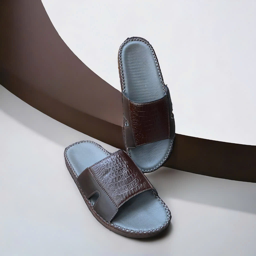 - Dép nam Huy Hoàng được làm từ chất liệu da cá sấu cao cấp nên càng sử dụng lâu bề mặt sẽ càng bóng đẹp tự nhiên. Da cá sấu mềm mại sẽ hạn