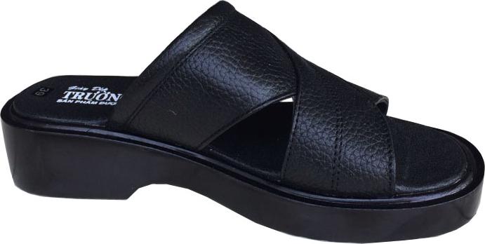 Dép da nam Quai ngang một bản da bò thật màu đen đế cao 2.5cm chính hãng Trường Hải DNĐ157