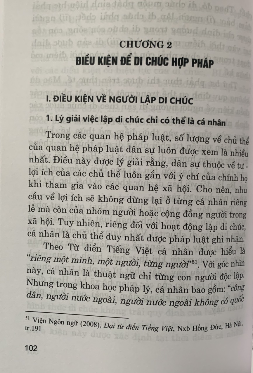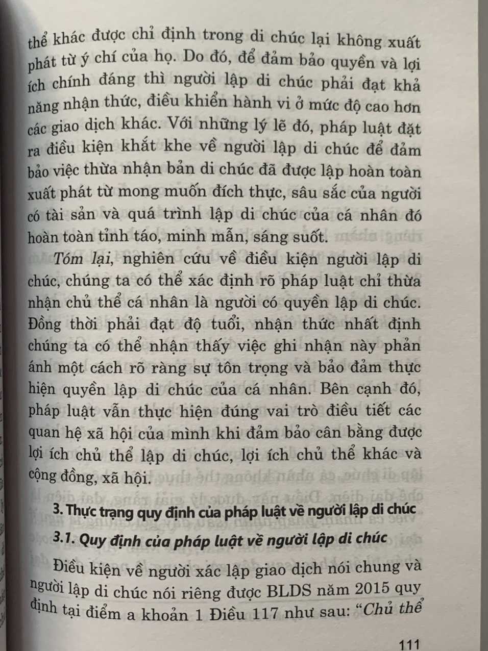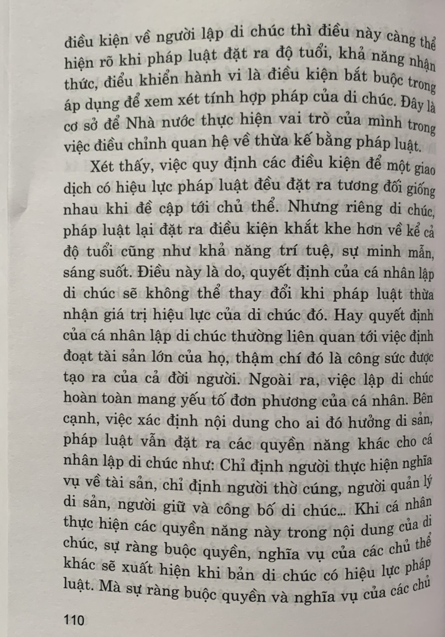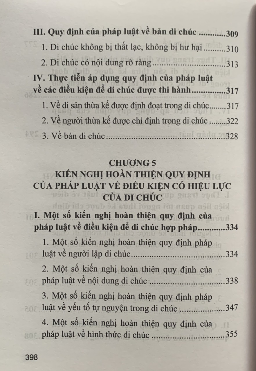 quan hệ đặc thù chỉ xuất hiện 1 chết. Do đó, ngay từ thời kì đầu. Quá trình dịch chuyển di sản theo di chúc đã rất khó khăn và phức tạp. Mọi sự đều phải tuân thủ quy định của pháp luật bản di chúc. Để đảm bảo tối đa tính trung thực của 1 di chúc, Nhà nước mỗi quốc gia đều thiết lập nhiều qui định dưới dạng các điều kiện áp dụng để xác định hiệu lực của một bản di chúc. Với mong muốn làm sáng tỏ hơn một số vấn đề lý luận về di chúc, các vấn đề pháp lý và thực tiễn áp dụng liên quan tới từng nhóm điều kiện có hiệu lực của di chúc, tác giả biên soạn cuốn sách “Di chúc và điều kiện có hiệu lực của di chúc”. Hy vọng rằng, cuốn sách góp phần cung cấp những kiến thức pháp lý, thông tin hữu ích tới bạn đọc.