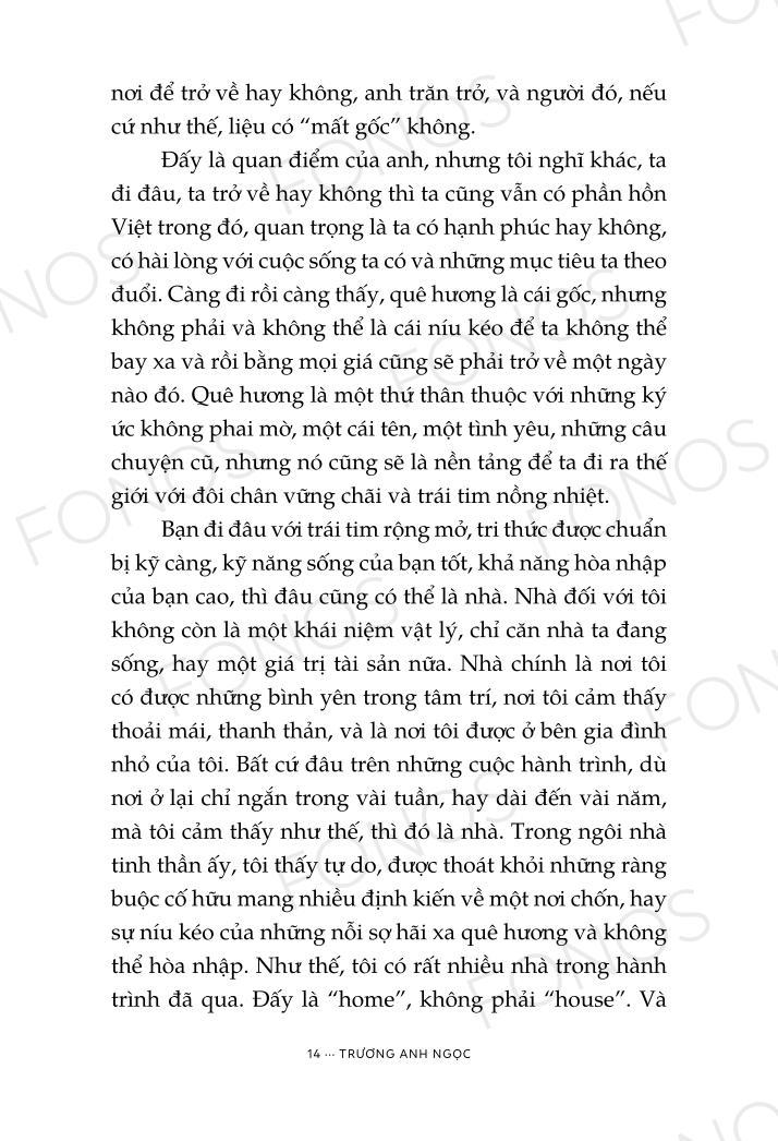 Đi nhiều hơn nghĩa là hiểu biết hơn, là trở nên bao dung và khiêm tốn hơn. Trương Anh Ngọc đã và đang dựng nên một biểu tượng về tinh thần công dân toàn cầu, về những chuyến đi làm người ta lột xác để sống đẹp, sống vì cộng đồng hơn nữa."