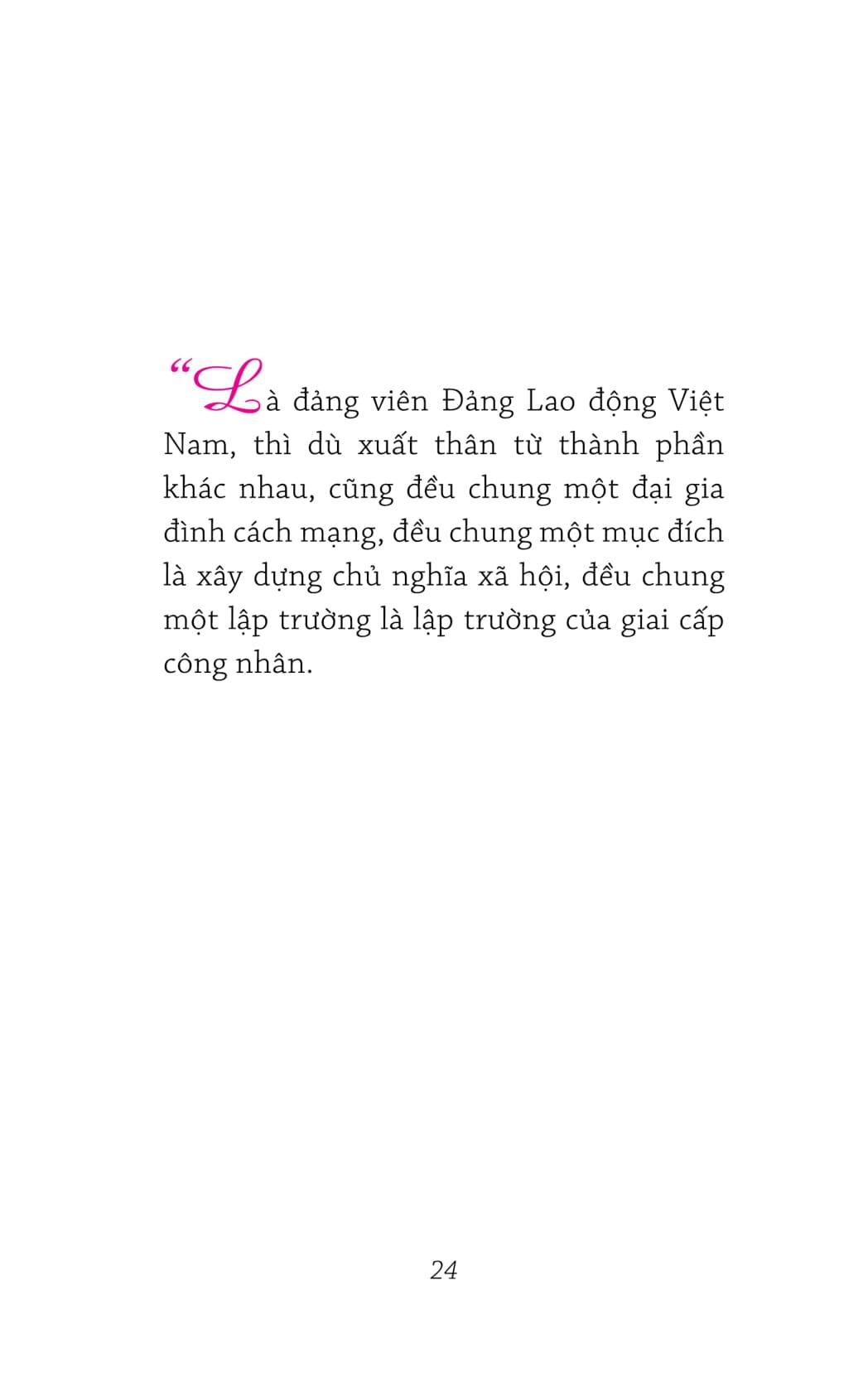 Nhà xuất bản Trẻ phối hợp với Phó giáo sư, Tiến sĩ Vũ Tình & Tiến sĩ Đặng Thị Minh Phượng, những người nghiên cứu về chuyên ngành Hồ Chí Minh, chắt lọc từ bộ Hồ Chí Minh toàn tập những bài phát biểu, những bài viết của Người về Đảng Cộng sản Việt Nam, bao gồm các nội dung: Đội tiên phong của giai cấp & dân tộc; Đảng viên; Nguyên tắc tổ chức & hoạt động; Xây dựng Đả để giúp độc giả dễ tiếp cận hơn với tư tưởng Hồ Chí Minh về những nội dung này.