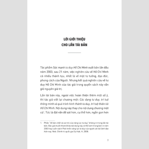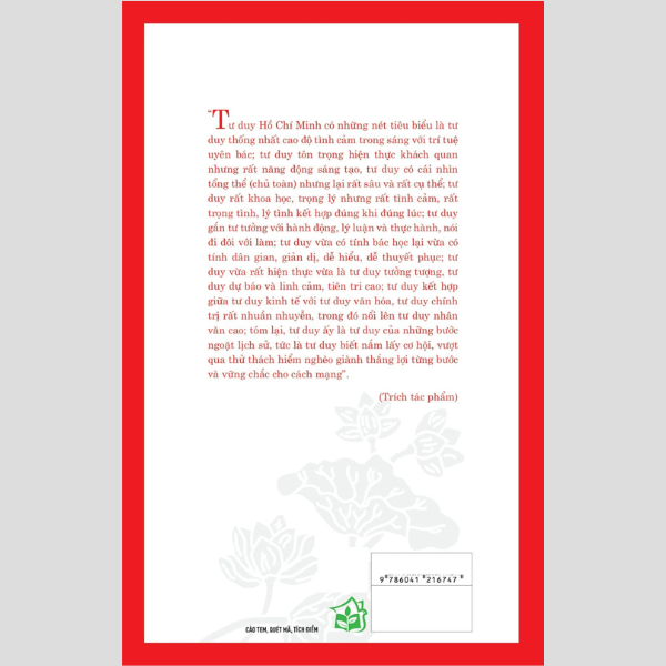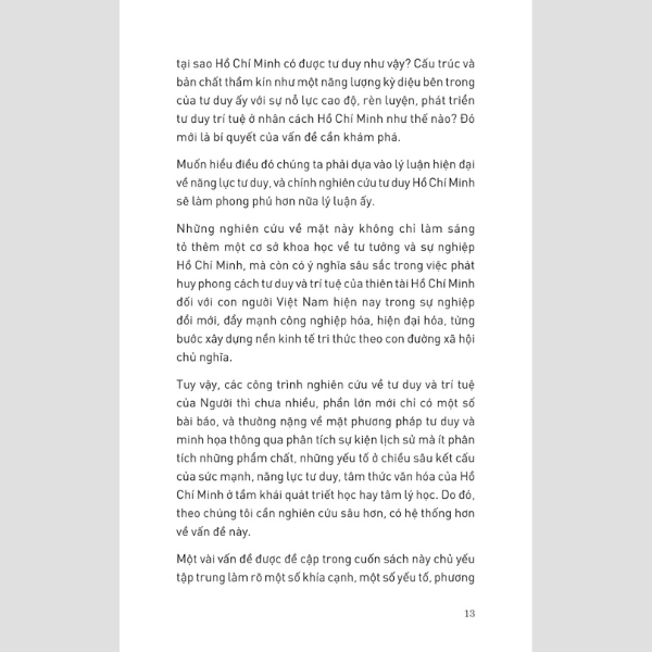 Trong quá trình nghiên cứu và trình bày những vấn đề đó, tác giả không chỉ làm rõ về phẩm chất tư duy Hồ Chí Minh mà còn qua đó làm rõ thêm lý luận về tư duy, nhất là góc độ năng lực và phong cách tư duy của vị lãnh tụ cách mạng này.
