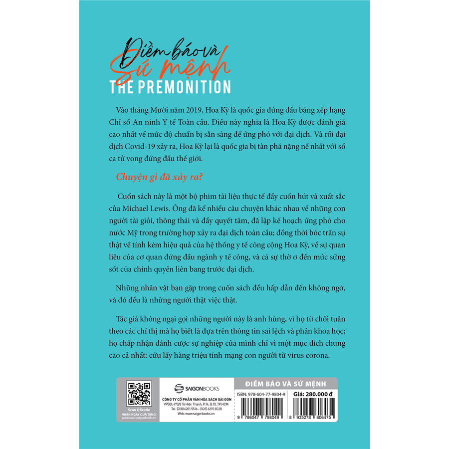 Với lối viết rất cuốn hút của tác giả Michael Lewis, những câu chuyện về chính sách và chiến lược phòng chống đại dịch không hề khô khan, mà có một sức hấp dẫn đặc biệt. The Premonition: A Pandemic Story - Điềm báo và sứ mệnh dẫn dắt người đọc đi qua toàn bộ hệ thống y tế công của Hoa Kỳ trong quá trình chuẩn bị và ứng phó với đại dịch. Vai trò và câu chuyện của mỗi cá nhân trong suốt quá trình này được tác giả kể theo lối đan xen, đầy kịch tính và vô cùng lôi cuốn. Người đọc có thể thấy thất vọng với nhà chức trách vì đã chậm trễ ra quyết định giãn cách xã hội, chần chừ xét nghiệm trên diện rộng hay thờ ơ trước lời cảnh báo từ các nhà chuyên môn, nhưng người đọc cũng sẽ được truyền động lực và cảm hứng trước tinh thần dũng cảm tiên phong, cống hiến hết mình để thực hiện nhiệm vụ chuyên môn của các nhân viên y tế, sự kết nối chặt chẽ giữa những con người xa lạ nhưng có chung mục tiêu đẩy lùi bệnh dịch.