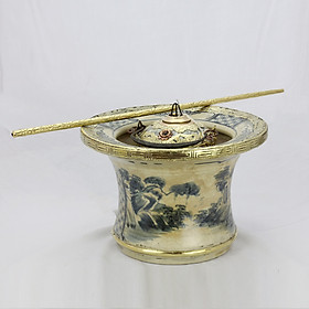 Điếu bát men rạn bọc đồng vẽ Sơn Thủy dáng cao chính hãng gốm sứ Bát Tràng - Điếu bát men rạn bọc đồng cao cấp, kiểu dáng độc đáo, được đúc bằng đồng nguyên