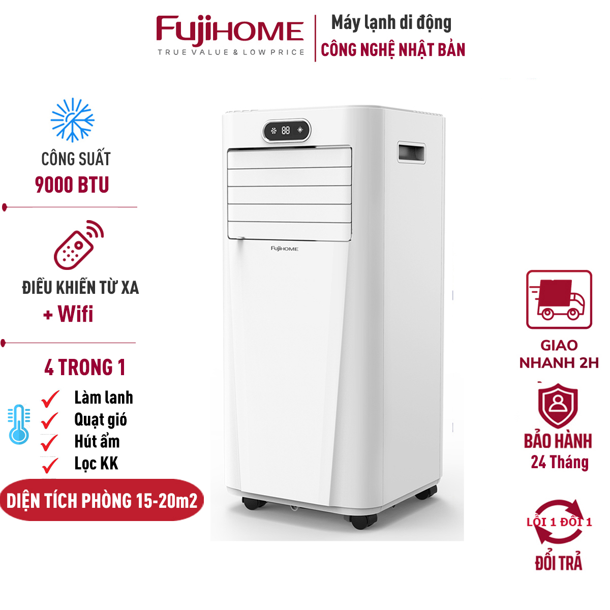 Máy điều hòa di động thông minh FUJIHOME-Công nghệ Nhật Bản >> Máy lạnh di động 4 trong 1: làm lạnh, hút ẩm, quạt, lọc không khí <<<