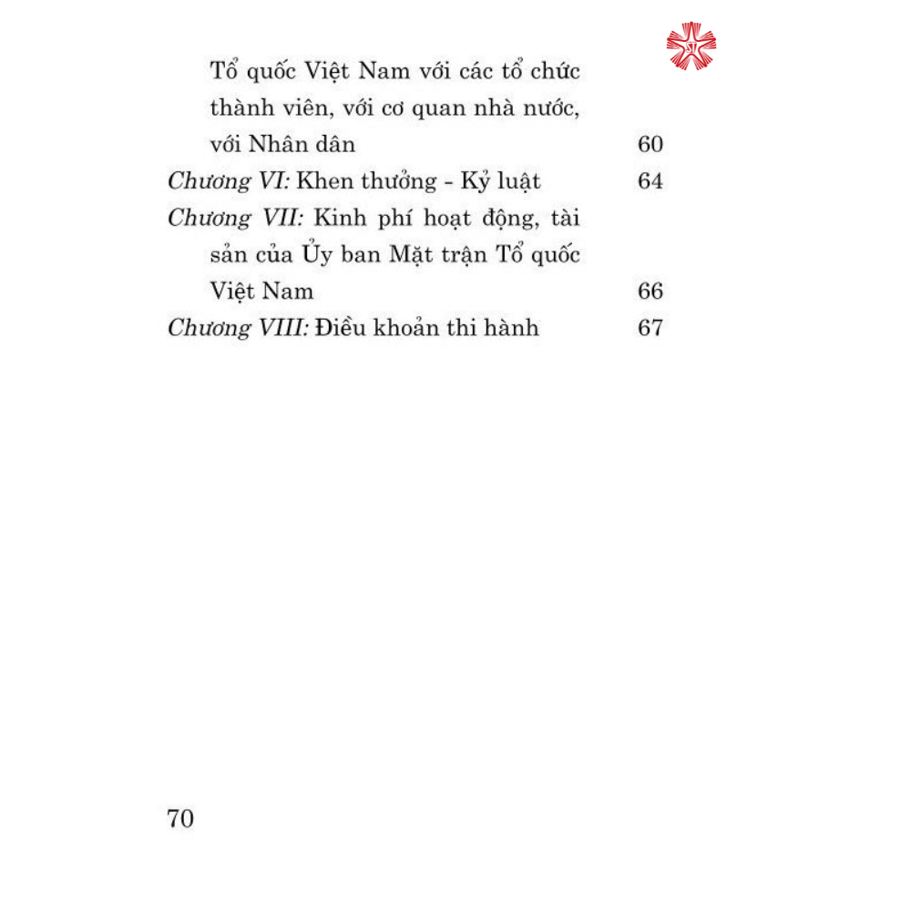 Mua tại TiktokCuốn sách giới thiệu toàn bộ nội dung Điều lệ Mặt trận Tổ quốc Việt Nam được Đại hội đại biểu toàn quốc Mặt trận Tổ quốc Việt Nam lần thứ IX thông qua ngày 20/9/2019.