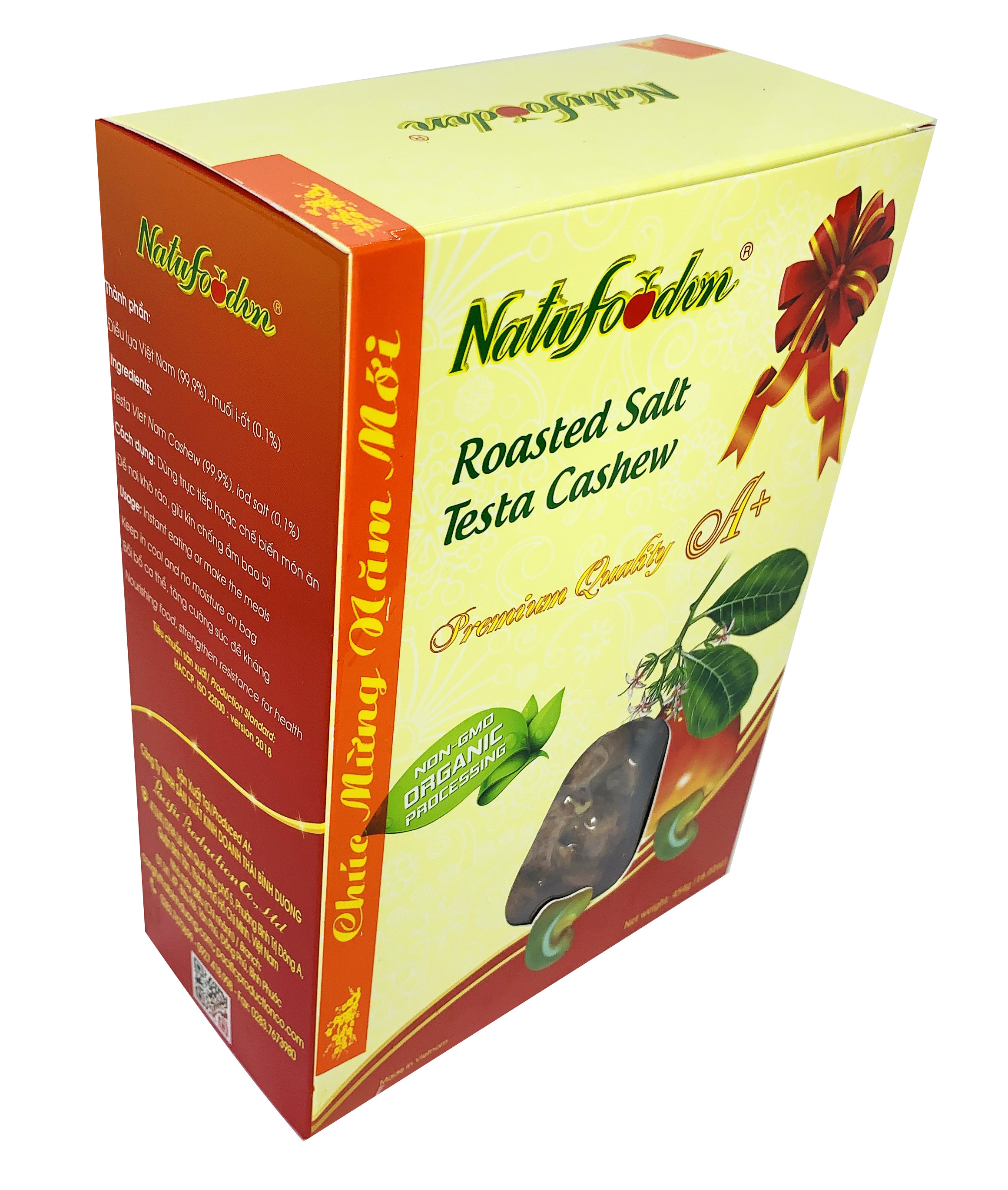 - Chứa lượng chất xơ dồi dào, hỗ trợ quá trình giảm cân. Vì sao nên chọn hạt điều làm quà tết? Vì hạt điều là biểu tượng của sức khỏe, là lời quan tâm nhẹ nhàng nhưng tinh tế gửi đến người quan trọng. Vì vậy, đây là sản phẩm rất được ưa chuộng khi sử dụng làm hộp quà tết. Sản phẩm của Natufoodvn được đóng gói sang trọng kèm dòng chữ chúc mừng năm mới trải dài theo viền hộp. Sẽ là món quà ý nghĩa cho gia đình, bạn bè và quý đối tác. Với hơn 10 năm kinh nghiệm trong ngành, chúng tôi biết cách lựa chọn những nguyên liệu chất lượng. Đồng thời, sản phẩm áp dụng công nghệ tiệt trùng 70 độ khử sạch vi khuẩn bên trong. Mua hạt điều rang muối ở Natufoodvn: Chúng tôi tự hào là dòng sản phẩm Việt Nam chất lượng cao được xuất khẩu qua nhiều nước như Thuỵ Sỹ, Đức, Tây Ban Nha, Pháp, Bỉ, Hà Lan, LB Nga, Cộng Hoà Séc, Canada, Mexico, Đài Loan, Hàn Quốc, Hoa Kỳ. Giá sản phẩm trên Tiki đã bao gồm thuế theo luật hiện hành. Tuy nhiên tuỳ vào từng loại sản phẩm hoặc phương thức, đ.ịa chỉ giao hàng mà có thể phát sinh thêm chi phí khác như phí vận chuyển, phụ phí hàng cồng kềnh,