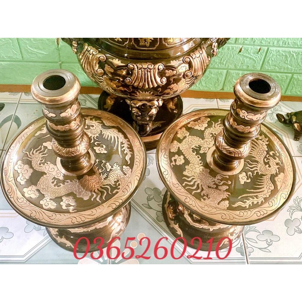 BỘ ĐỈNH ĐỒNG XANH SONG LONG CHẦU NGUYỆT CAO 65CM NẶNG 34KG