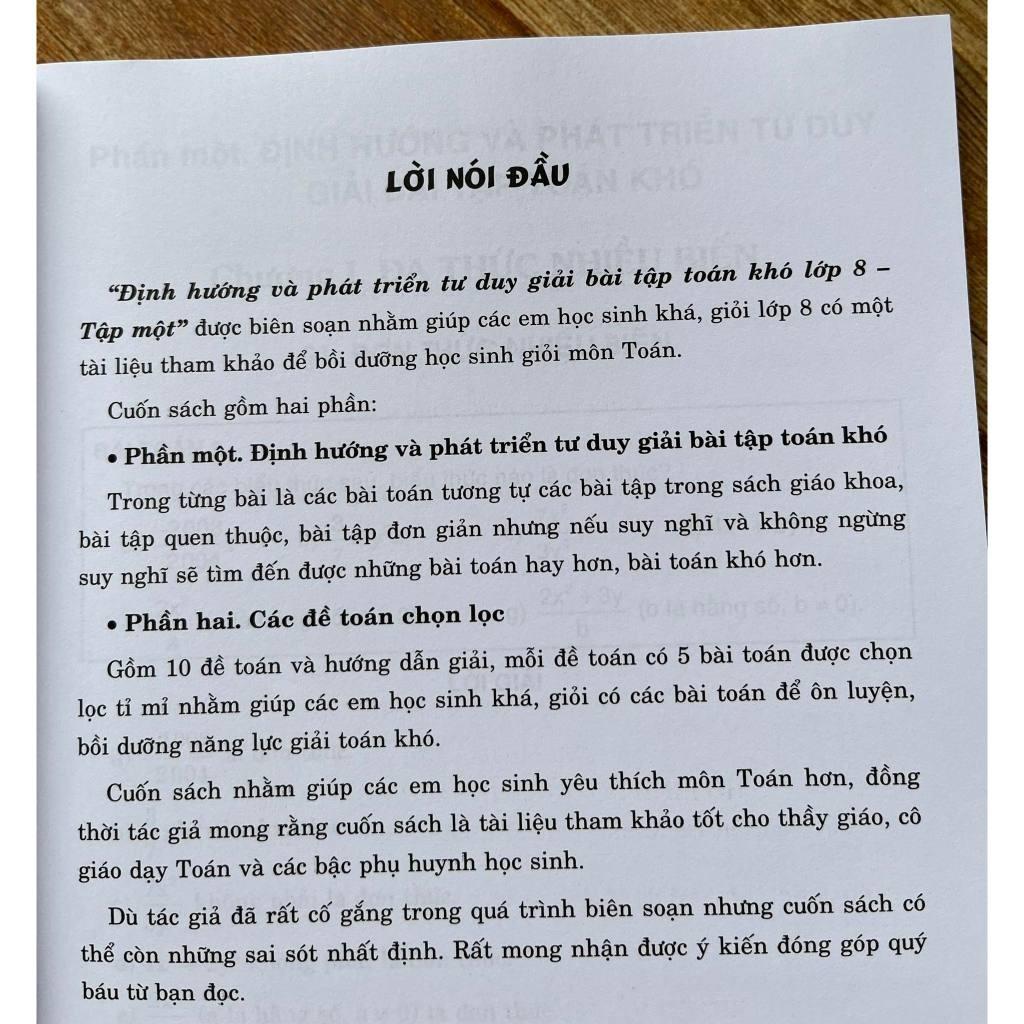 "Định hướng và phát triển tư duy giải bài tập toán khó lớp 8" được biên soạn nhằm giúp các em học sinh khá, giỏi lớp 8 có một tài liệu tham khảo để bồi dưỡng học sinh giỏi môn Toán.