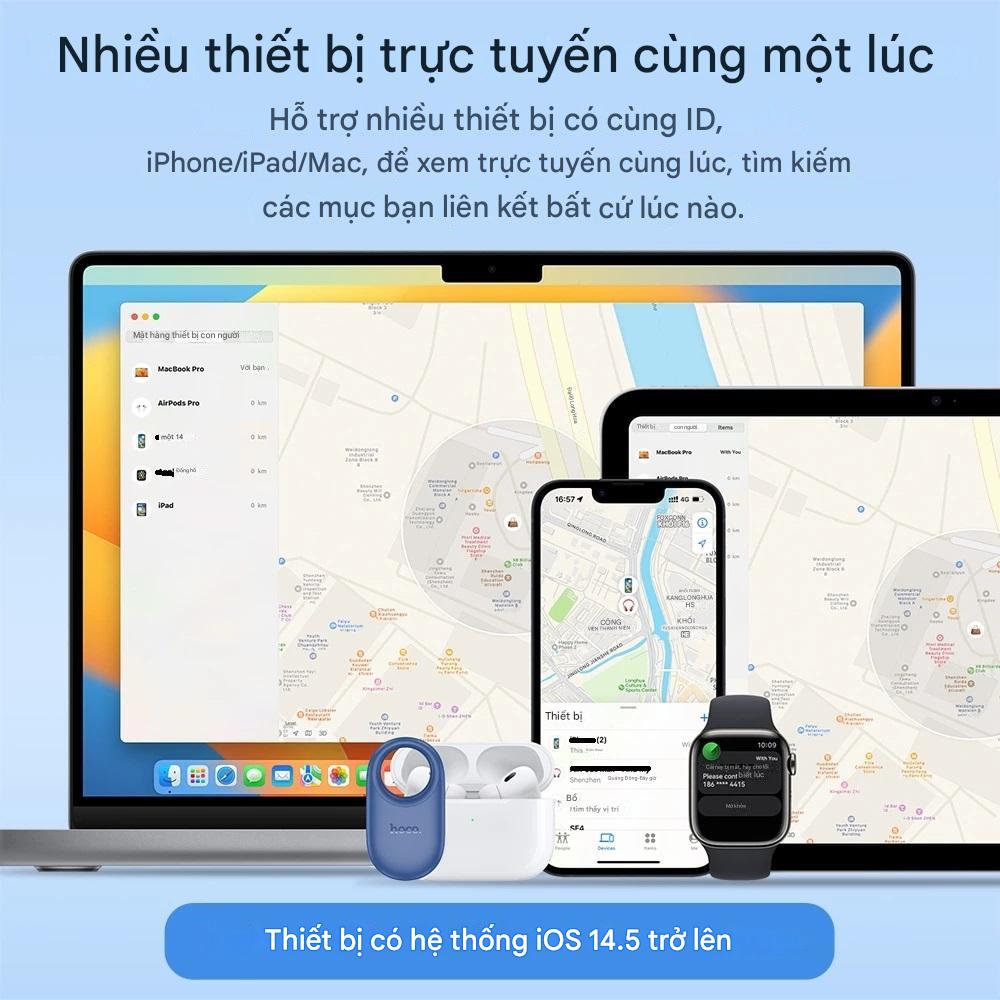 LƯU Ý: Định vị Hoco. E94 CHỈ tương thích với các thiết bị của nhà TÁO NHƯ i,Phone, i,Pad... Cài đặt iOS 14.5 trở lên