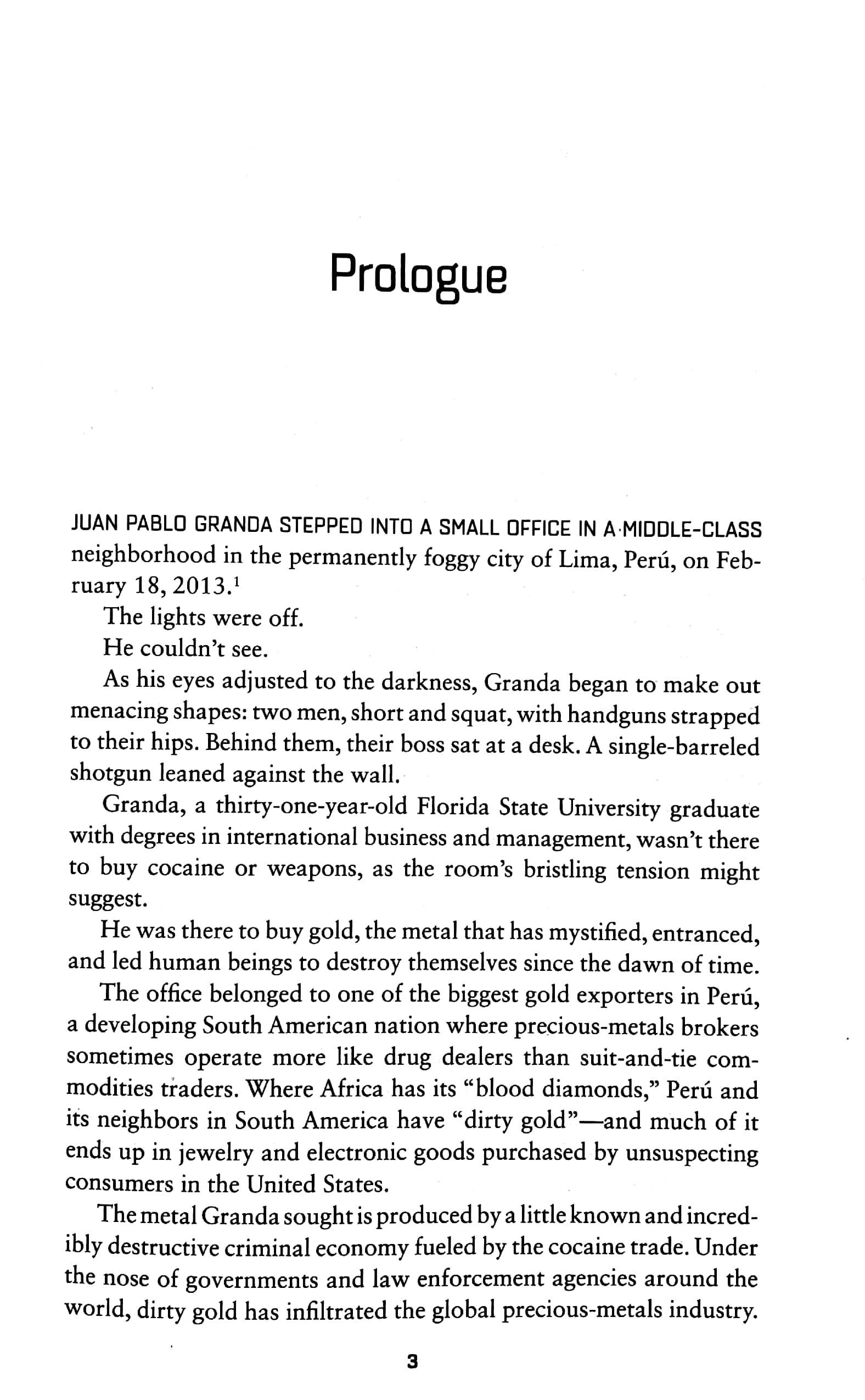The book follows the meteoric rise and fall of a group of drug traders known as 'the three amigos' who laundered narco money through gold illegally brought into the US and raked in millions before they were caught. Whilst they were making their millions, the humanitarian situation in Colombia, Peru, and many other countries deteriorated dramatically.