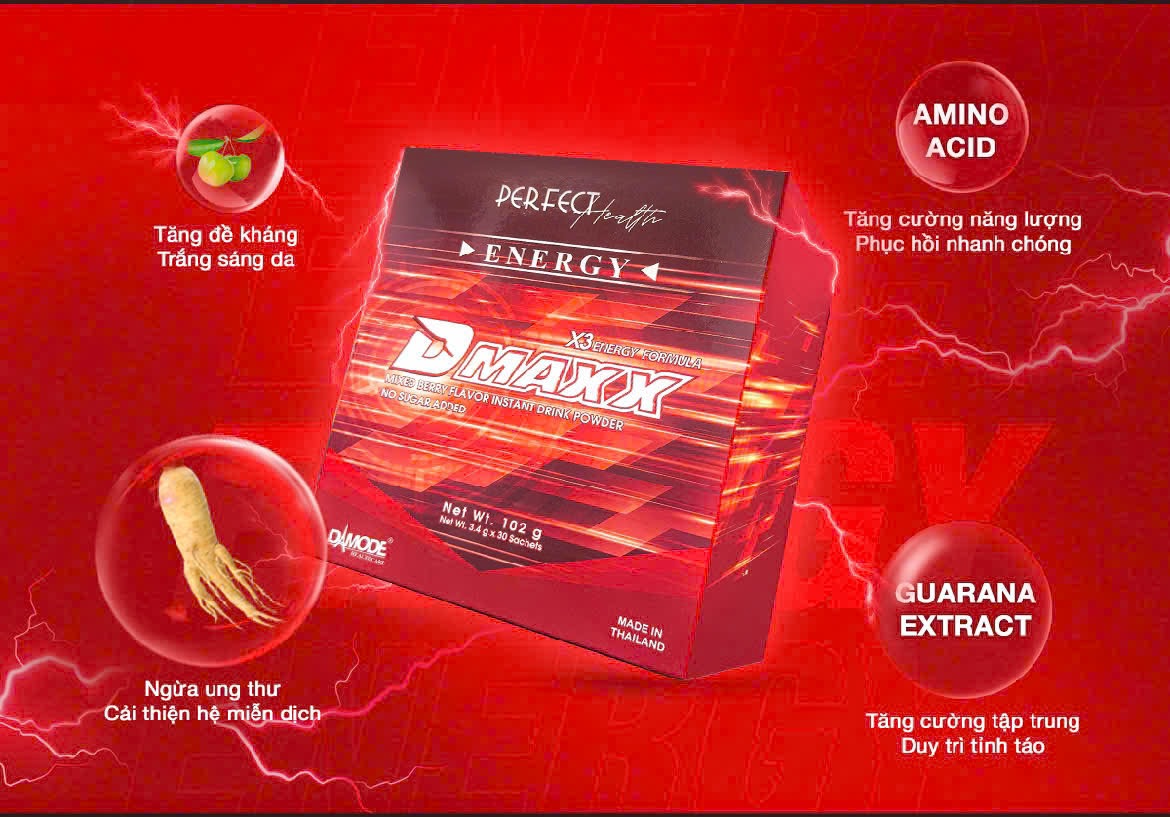 Dmaxx energy formula là sản phẩm thức uống năng lượng có chức năng bổ sung năng lượng cho người uống mỗi ngày dưới dạng thức uống hòa tan.