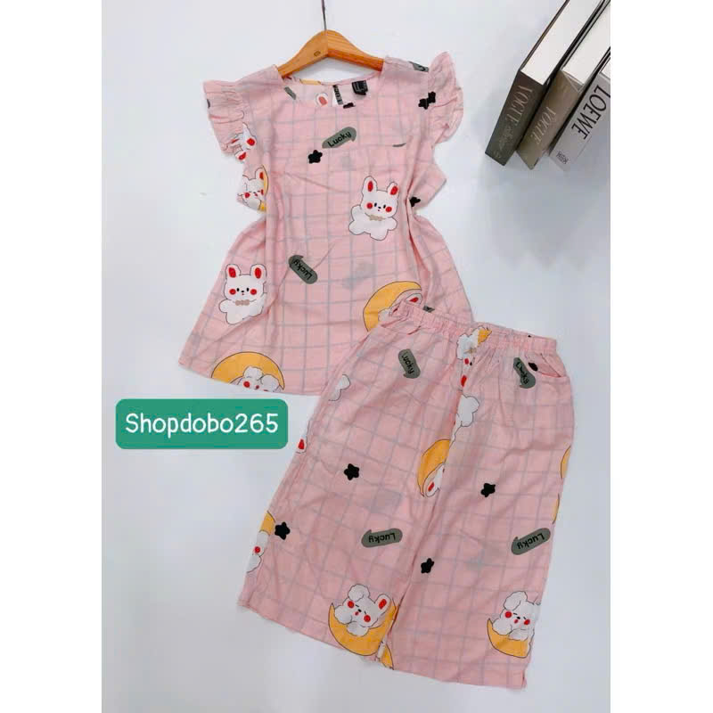Đồ bộ nữ, đồ ngủ mặc nhà lửng tay cánh tiên vải lanh mềm ,mát BL 169 họa tiết dễ thương size 45-70kg. Chất: vải lanh (tole) 2 da mềm,mịn,mát, phù hợp với thời tiết