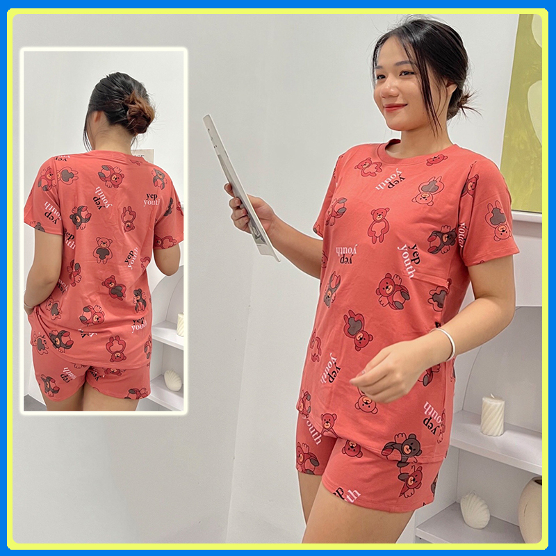 🔰 Bộ nữ mặc nhà quần đùi in gấu - DBO663 📌 #185k ☘ thun cotton, form 40-55kg vừa tùy chiều