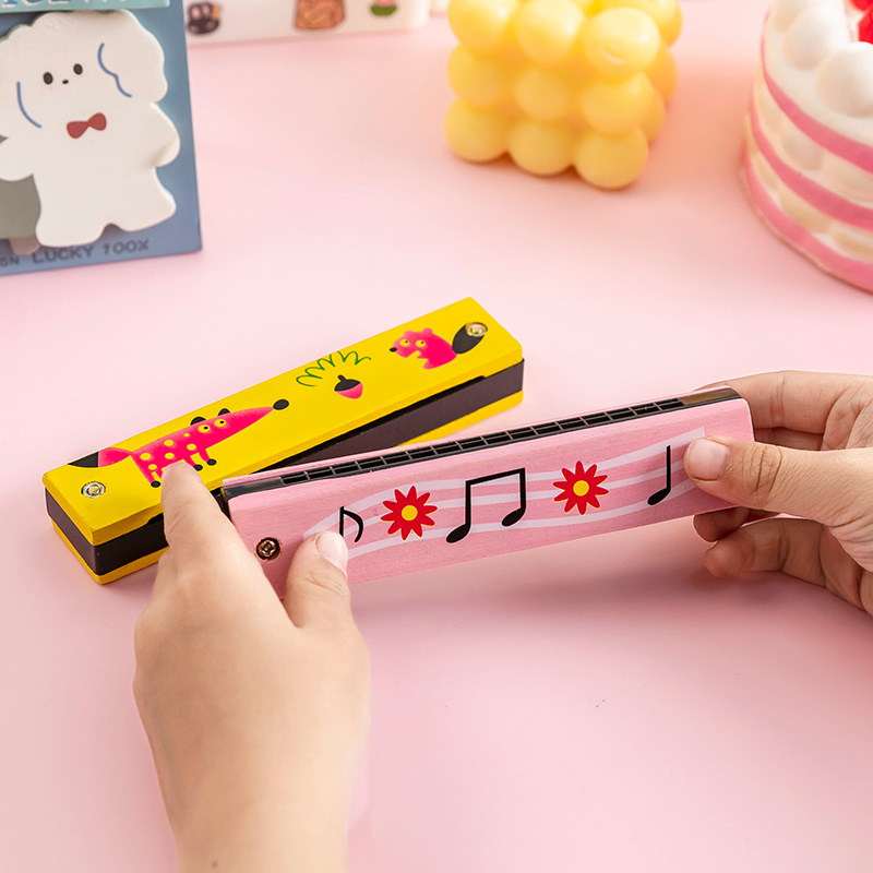 Đồ chơi âm nhạc Kèn harmonica bằng gỗ 32 lỗ, họa tiết dễ thương cho trẻ em - Space Kids
