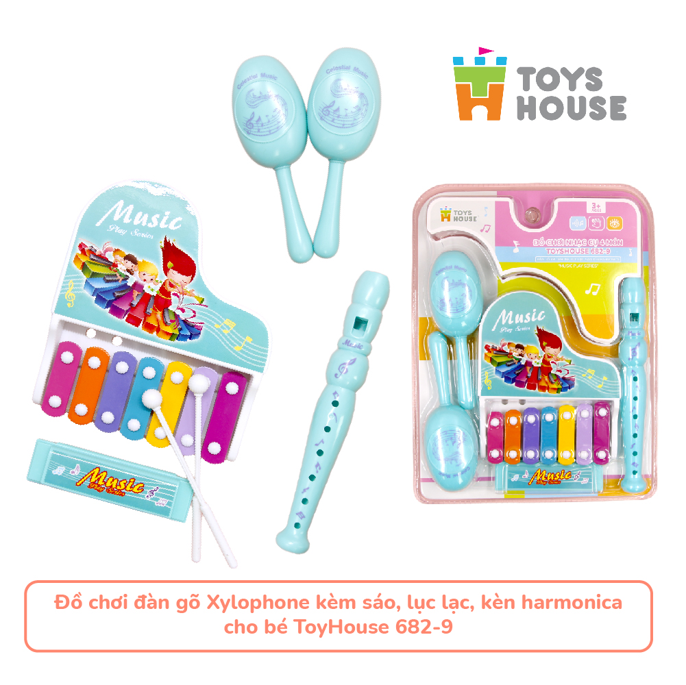 ✨Đồ chơi đàn gõ Xylophone kèm sáo, lục lạc, kèn harmonica - Đồ chơi âm nhạc cho bé ToyHouse 682-9