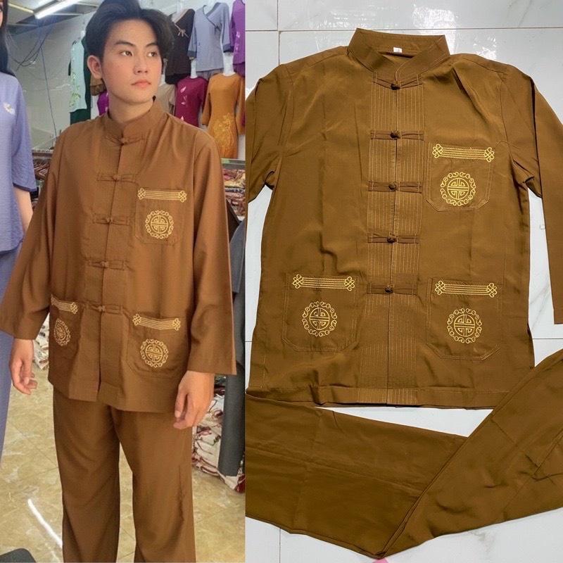 Quần áo phật tử, đồ lam đi chùa mẫu nam thêu túi vải Linen
