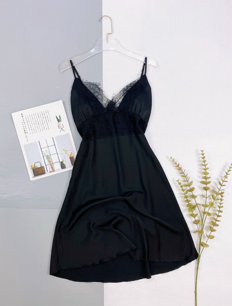 Đầm ngủ 2 dây phối ren chất liệu lụa ngọc trai Quảng Châu mặc vừa mềm vừa mát rất dễ chịu