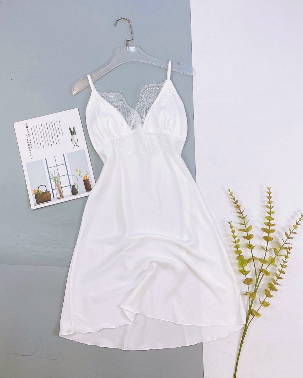 Thương hiệu: Sanny House Tên sản phẩm: Váy ngủ Chất liệu: lụa cao cấp mềm mịn, co giãn, thấm hút tốt Kiểu dáng: gợi cảm, trẻ trung, hiện đại Màu: trắng