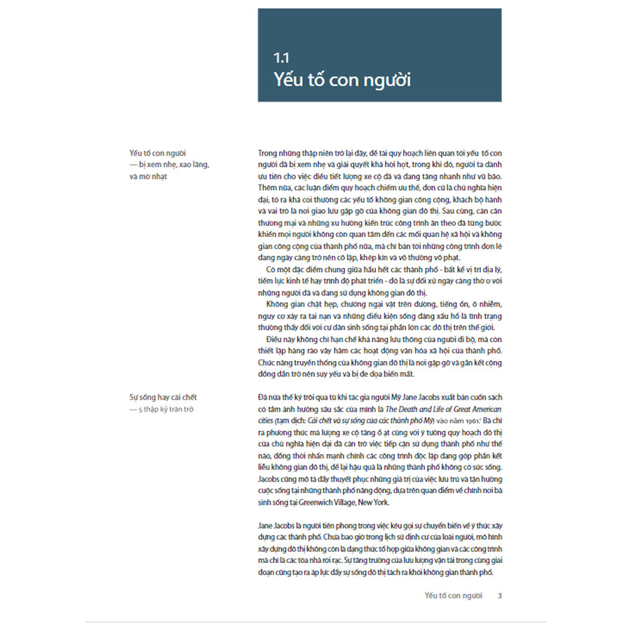 Thành phố là nơi con ngươi gặp gỡ để trao đổi ý tưởng, giao dịch, hay chỉ đơn giản là thư giãn và hưởng thụ. Không gian công cộng đô thị - phố phường, quảng trường và công viên - là bối cảnh và chất liệu cho các hoạt động này. Jan Gehl, bậc thầy thiết kế không gian công cộng, hiểu biết sâu sắc về cách chúng ta sử dụng không gian chức năng này và cung cấp các công cụ cần để cải thiện thiết kế tại những khu vực công cộng, hướng tới đích đến là chất lượng cuộc sống.