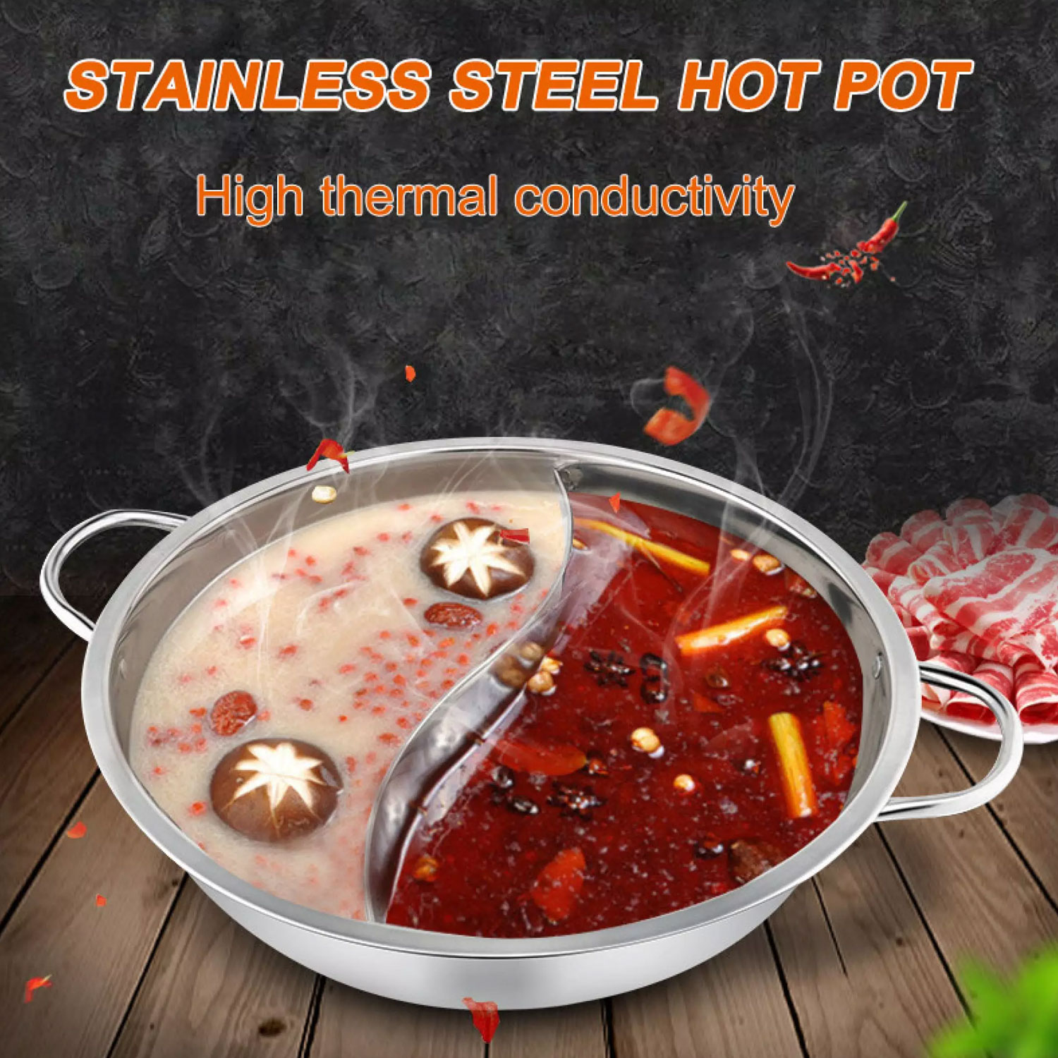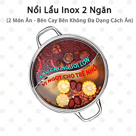 Nồi Lẩu Inox 2 Ngăn 30cm Nấu Được Bếp Từ và Bếp Gas, Có Nắp Kính Chất Lượng Cao Nồi lẩu inox 2 ngăn 30cm là lựa chọn lý tưởng cho những bữa tiệc lẩu