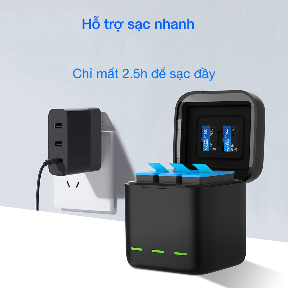 Dock sạc 3 pin có nắp cho GoPro 5/6/7/8/9/10/11