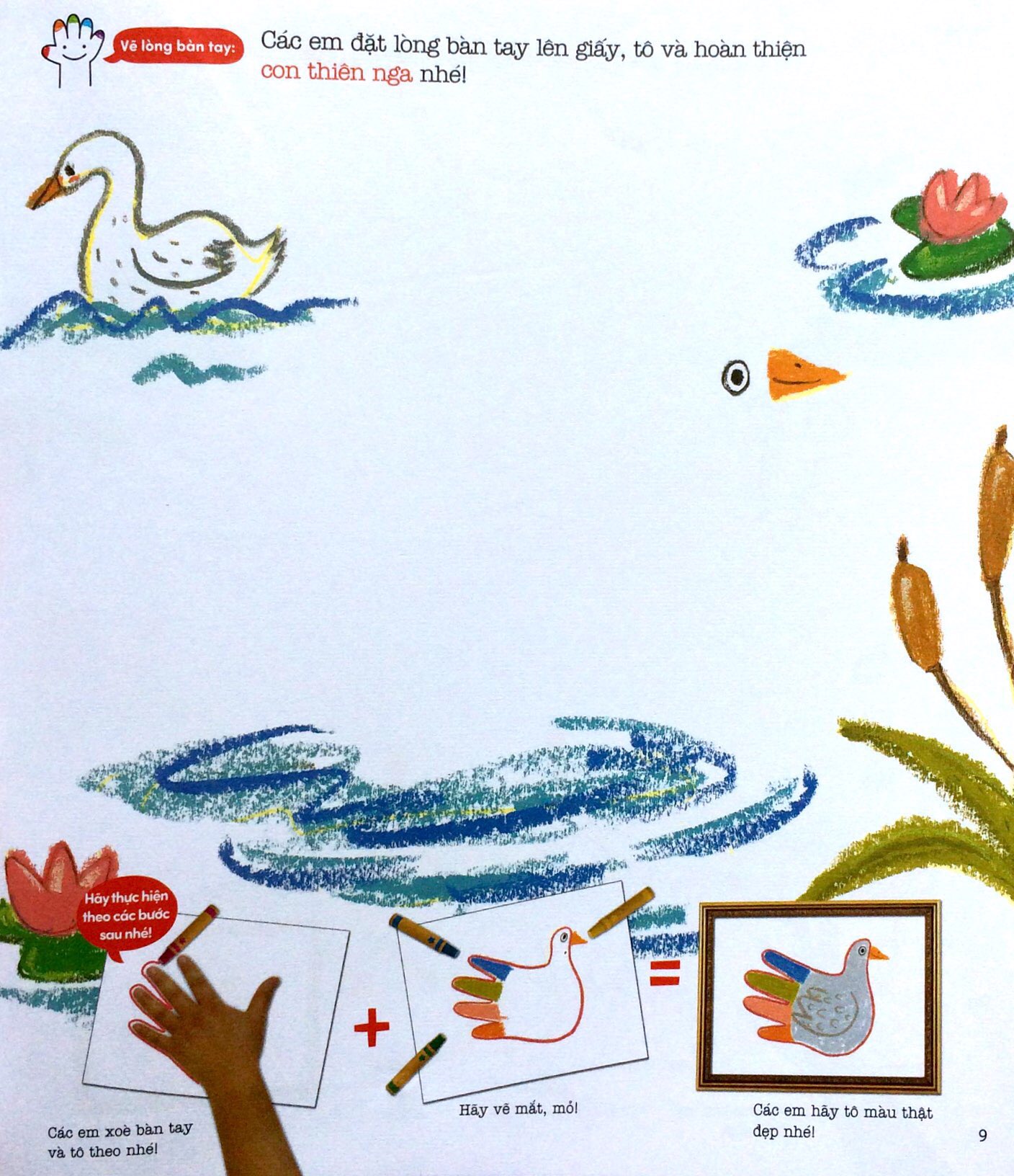 Mà cách dễ nhất để rèn luyện đôi tay chính là vẽ. Giáo dục mỹ thuật sáng tạo rất quan trọng để phát triển não bộ và phát triển cảm xúc của trẻ. Trong các loại hình giáo dục mỹ thuật đa dạng gần đây, giáo dục mỹ thuật thông qua trò chơi và trải nghiệm thực tế đang được quan tâm rộng rãi. Bởi vì trong giai đoạn từ 3 đến 7 tuổi, nhiều loại kỹ năng vận động tinh được phát triển trong quá trình tác động qua lại với đại não. Thực tế là các hoạt động mỹ thuật đa dạng kết hợp trò chơi và vận động cơ thể không những nuôi dưỡng tình cảm toàn diện và phong phú cho trẻ; phát triển trí tưởng tượng, trí sáng tạo, mà còn có hiệu quả phát triển năng lực nhận thức của trẻ. Quả thực trẻ có thể bắn một mũi tên trúng ba đích IQ, EQ, CQ.