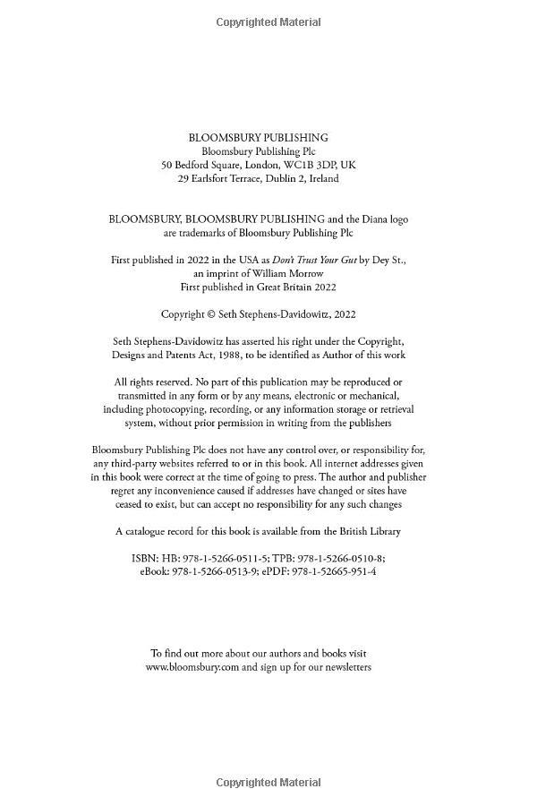 "Seth Stephens-Davidowitz is more than a data scientist. He is a prophet for how to use the data revolution to reimagine your life. Don’t Trust Your Gut is a tour de force—an intoxicating blend of analysis, humor, and humanity.” — Daniel H. Pink, #1 New York Times bestselling author of When, Drive, and To Sell Is Human