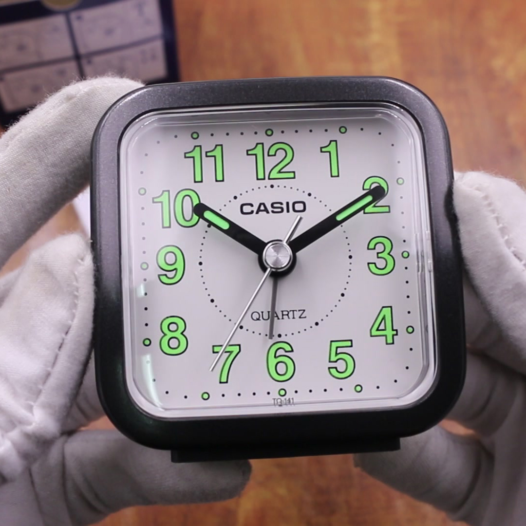 Đồng hồ báo thức để bàn Casio TQ-141-1DF có thiết kế đơn giản thanh lịch và nhỏ gọn hiện thị đầy đủ tính năng xem giờ, báo thức có dạ quang trên mặt số và