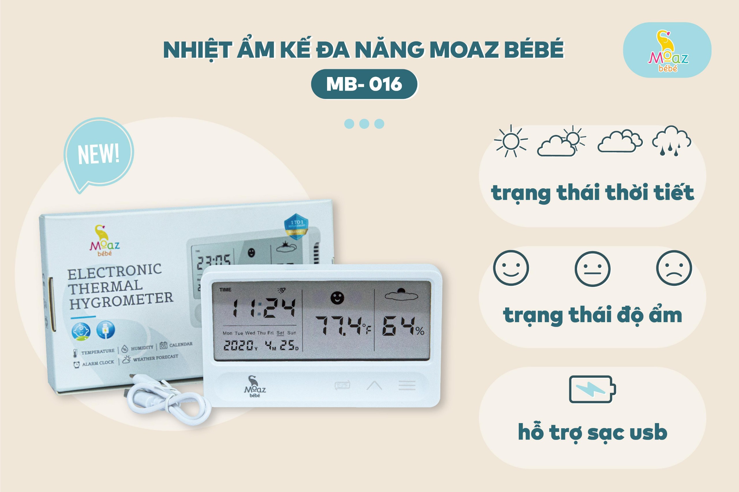 ✨Đồng hồ đo nhiệt độ độ ẩm Moaz Bebe MB-016