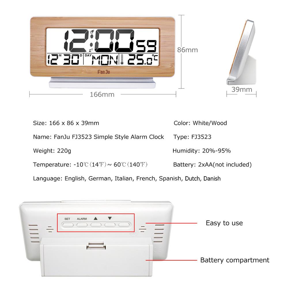 ✨Đồng hồ kỹ thuật số FanJu có chức năng hiển thị nhiệt độ, mặt gỗ thời trang, đèn nền màn hình LCD với phông chữ lớn dễ đọc