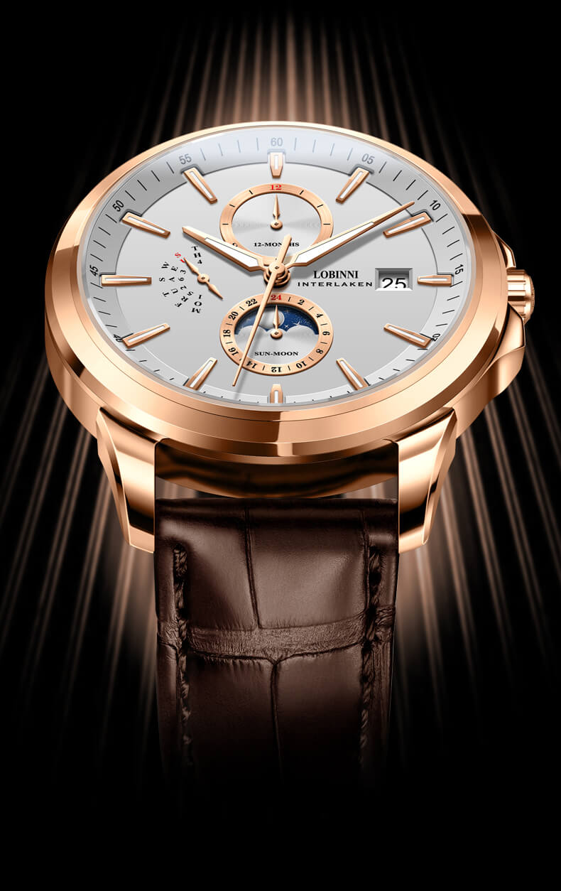 Đồng hồ nam chính hãng LOBINNI Thụy Sỹ Thiết kế sang trọng, đẳng cấp cho quý ông Thời gian trữ cót lâu lên đến 40h Chống nước 5ATM, Kính sapphire Toàn bộ máy được làm