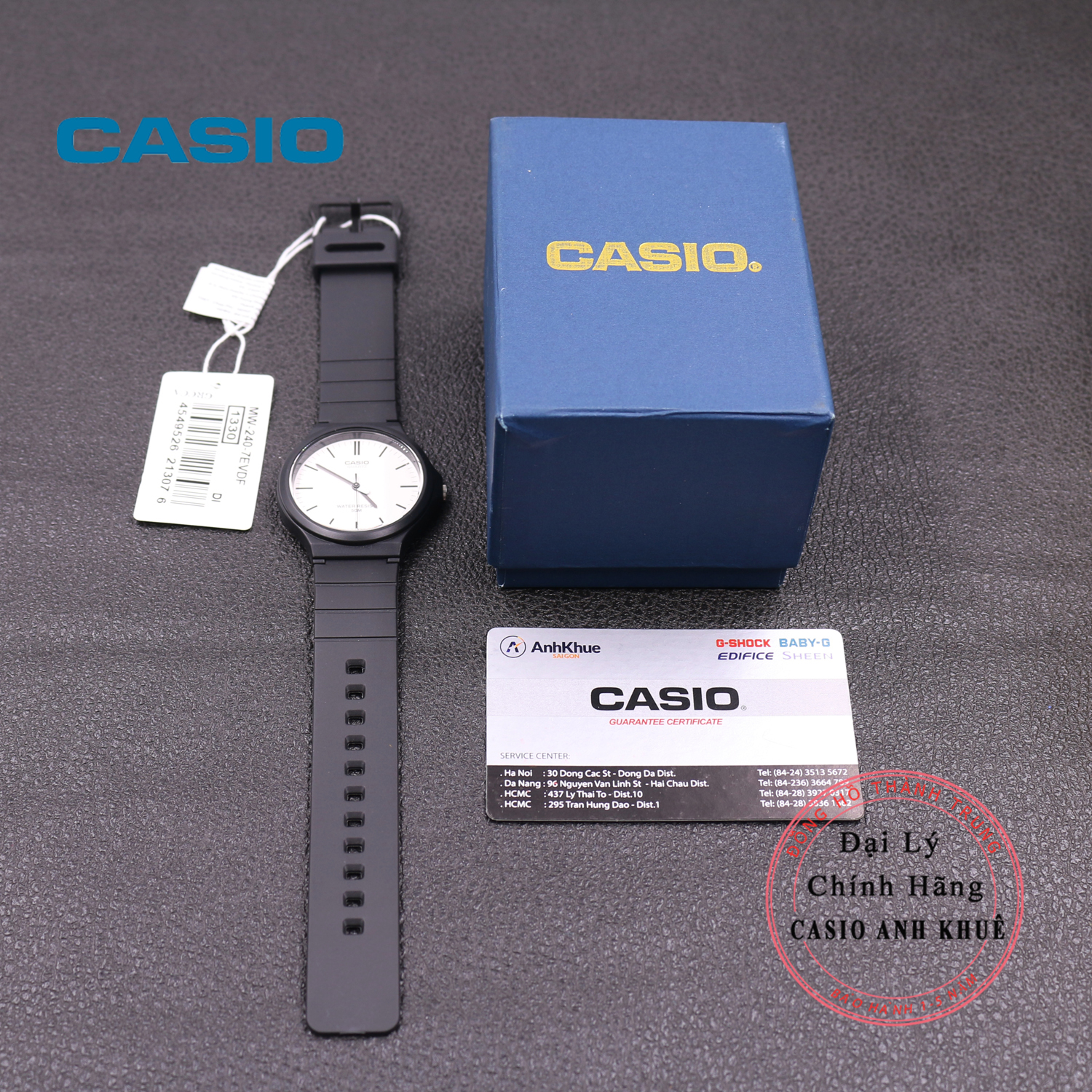 Đồng Hồ Nam Casio MW-240-1BVDF dây nhựa màu đen kết hợp với mặt số màu trắng chống nước 50m.