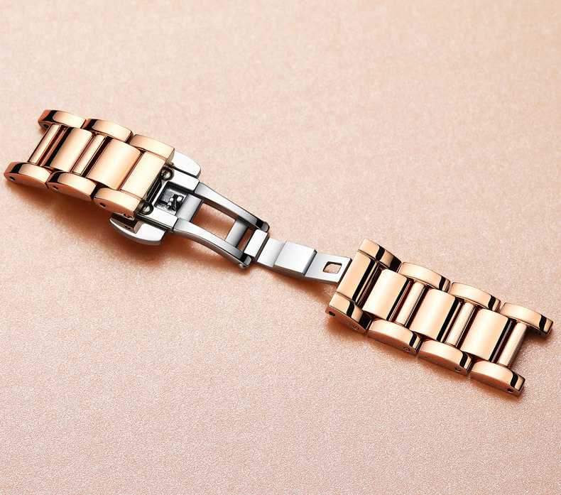 Thông số kỹ thuật - Chốt gập ba - Dây đeo bằng thép không gỉ - Mặt kính khoáng - Chống nước - Giờ hiện hành thông thường - Đồng hồ kim: 3 kim (giờ,
