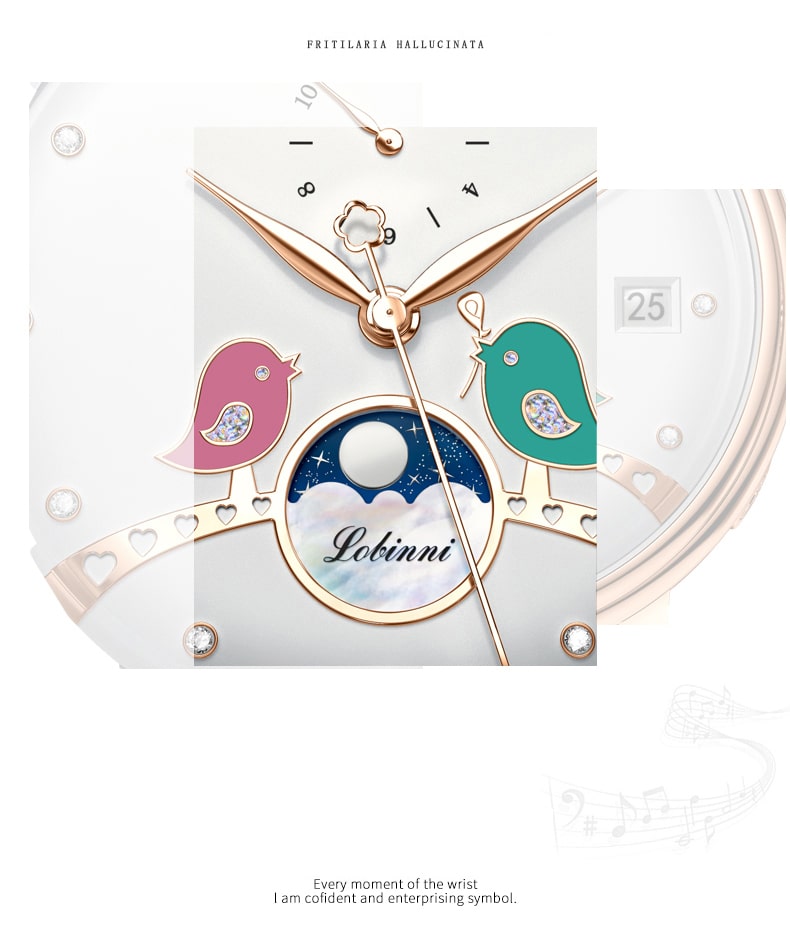 Đồng hồ nữ chính hãng Lobinni Thụy Sỹ Thiết kế hiện đại,sang trọng dành cho phái nữ Thời gian trữ cót lâu lên đến 40h Chống nước 5ATM, Kính sapphire Toàn bộ máy được làm