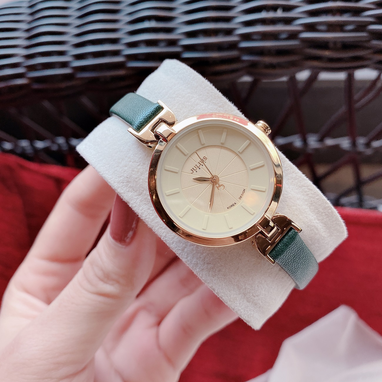 THÔNG SỐ SẢN PHẨM Thương hiệu: JULIUS Mã sản sản phẩm: JA-1112D (Đỏ) Dành cho: Nữ giới, yêu thích thời trang và phá cách Chất liệu dây: Dây da Genuine Leather bền bỉ Chất liệu mặt kính: Mặt kính khoáng