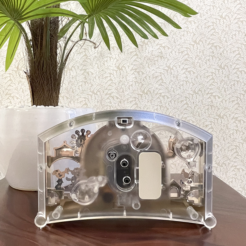Đồng hồ để bàn Nhật Bản Rhythm 4RP796WS18, dùng pin (AAx2), vỏ nhựa cao cấp mạ vàng kết hợp mica trong suốt nhìn xuyên thấu, Kích thước 14.0 x 22.8 x 8.3cm, trọng lượng 390g. Quả