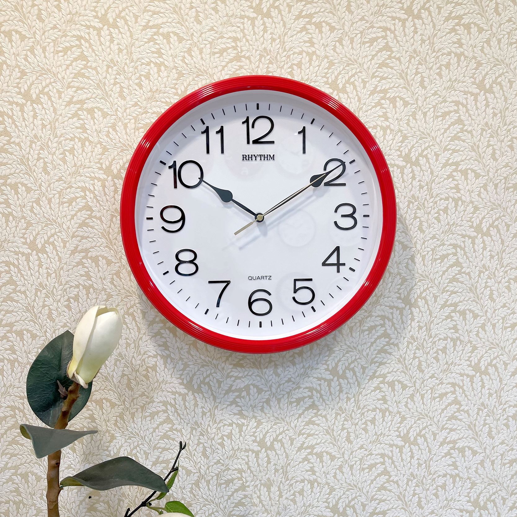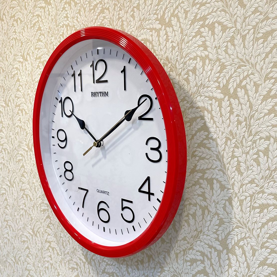 Mua tại TiktokĐồng hồ treo tường Rhythm CMG734NR01, dùng 1 pin tiểu (AA x 1), vỏ nhựa cao cấp màu đỏ, không bạc màu, Kích thước 31.2 x 5.0cm, trọng lượng 710g. Máy kim giật tiết kiệm