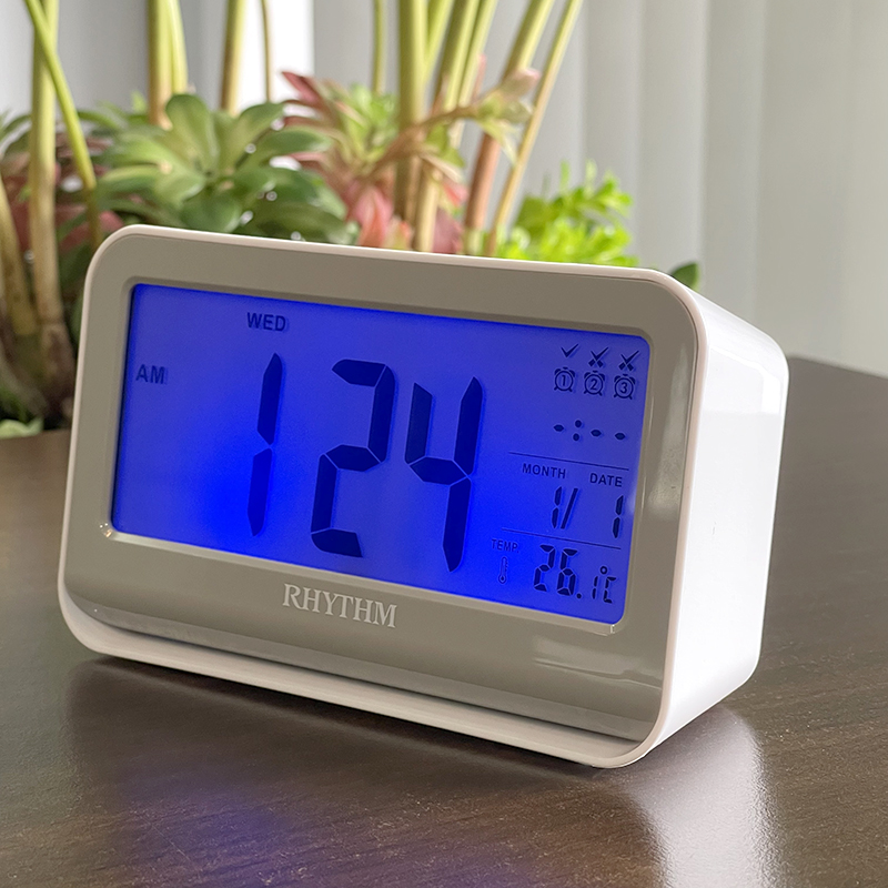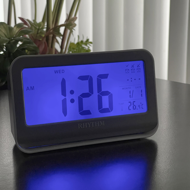 Đồng hồ để bàn báo thức Rhythm LCT097NR03 – KT 15.0 x 8.8 x 5.0cm, trọng lượng 190g. Vỏ nhựa. Dùng Pin. Màn hình tinh thể lỏng LCD có thể chỉnh độ đậm nhạt chữ.