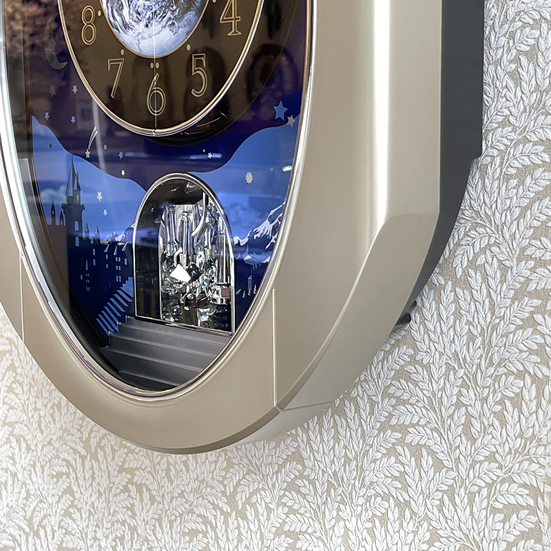 Mua tại TiktokĐồng hồ treo tường Rhythm Magic Motion 4MH408WU19 , dùng 2 pin (D). Vỏ nhựa cao cấp sơn nhủ màu vàng sâm banh. Kích thước 38.4 x 47.0 x 13.9cm, trọng lượng 3.3kg. Âm thanh thính phòng CTS (CLARION TONE SOUND) với 24 bản nhạc cổ điển ( 12+12 Melodies), 6 bản giáng sinh (6 X-mas SONGS ). Nút chinh âm lượng tiện lợi. Cảm ứng ánh sáng tự động không phát nhạc khi thiếu sáng. Quả lắc đính pha lê. Núm chỉnh âm lượng tiện lợi.