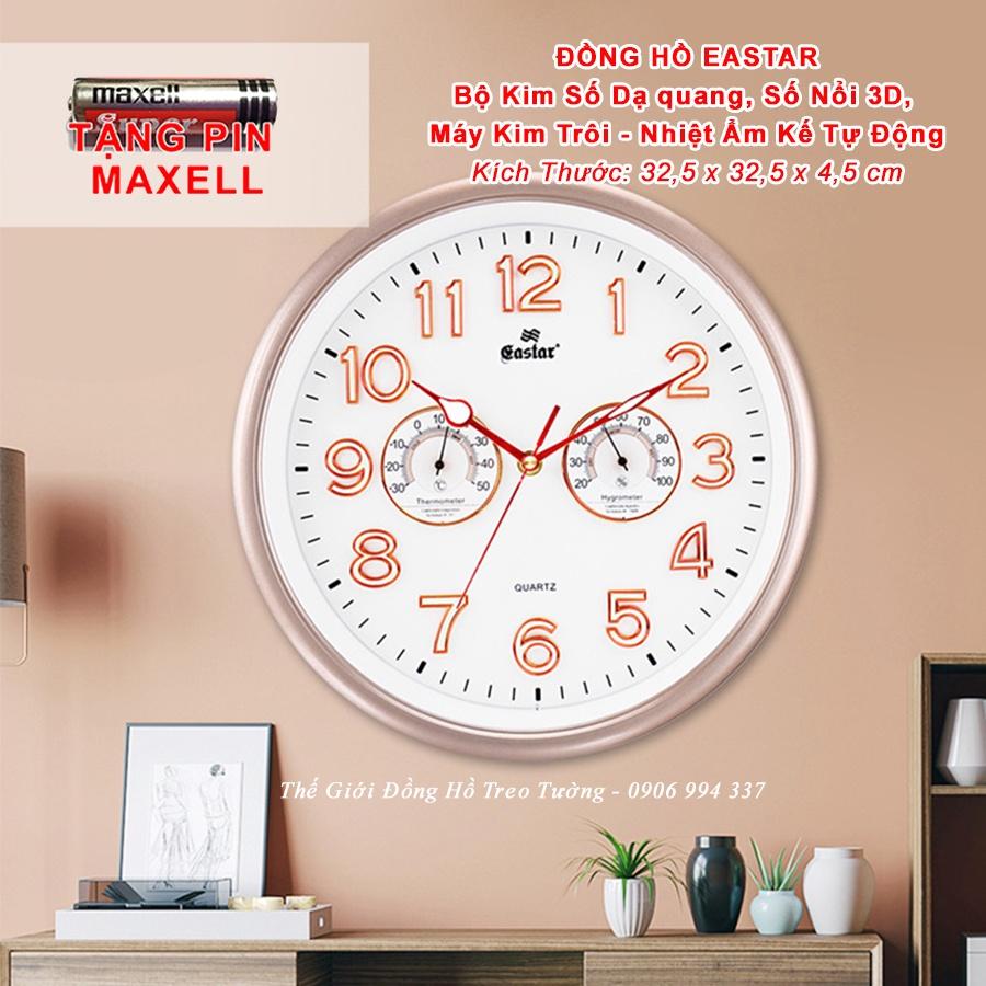 ✨Đồng hồ Treo Tường KIM TRÔI EASTAR Tròn có DẠ QUANG và Đồng hồ Cơ Đo NHIỆT ĐỘ - ĐỘ ẨM - Tặng Pin Maxell - Bảo Hành 1 Năm