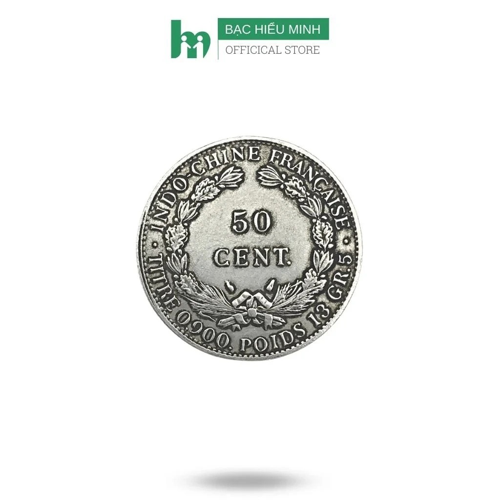 Đồng Xu Hoa Xòe Đánh Gió Đông Dương Hình Bà Đầm Cũ Bạc Ta 50 Cent BẠC HIỂU MINH DDD002C