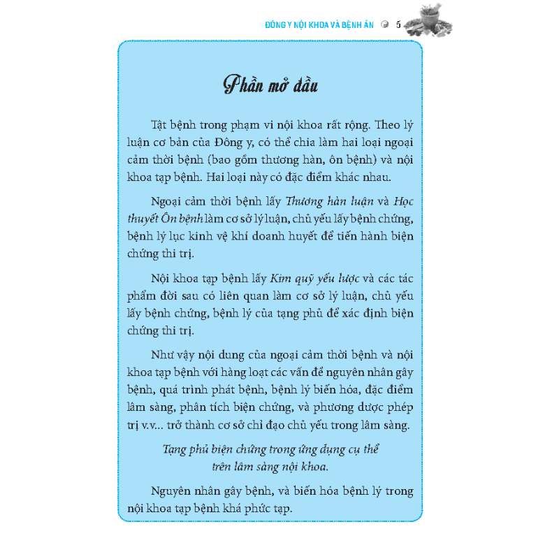 Như vậy nội dung của ngoại cảm thời bệnh và nội khoa tạp bệnh với hàng loạt các vấn đề nguyên nhân gây bệnh, quá trình phát bệnh, bệnh lý biến hóa, đặc điểm lâm sàng, phân tích biện chứng, và phương dược phép trị trở thành cơ sở chỉ đạo chủ yếu trong lâm sàng