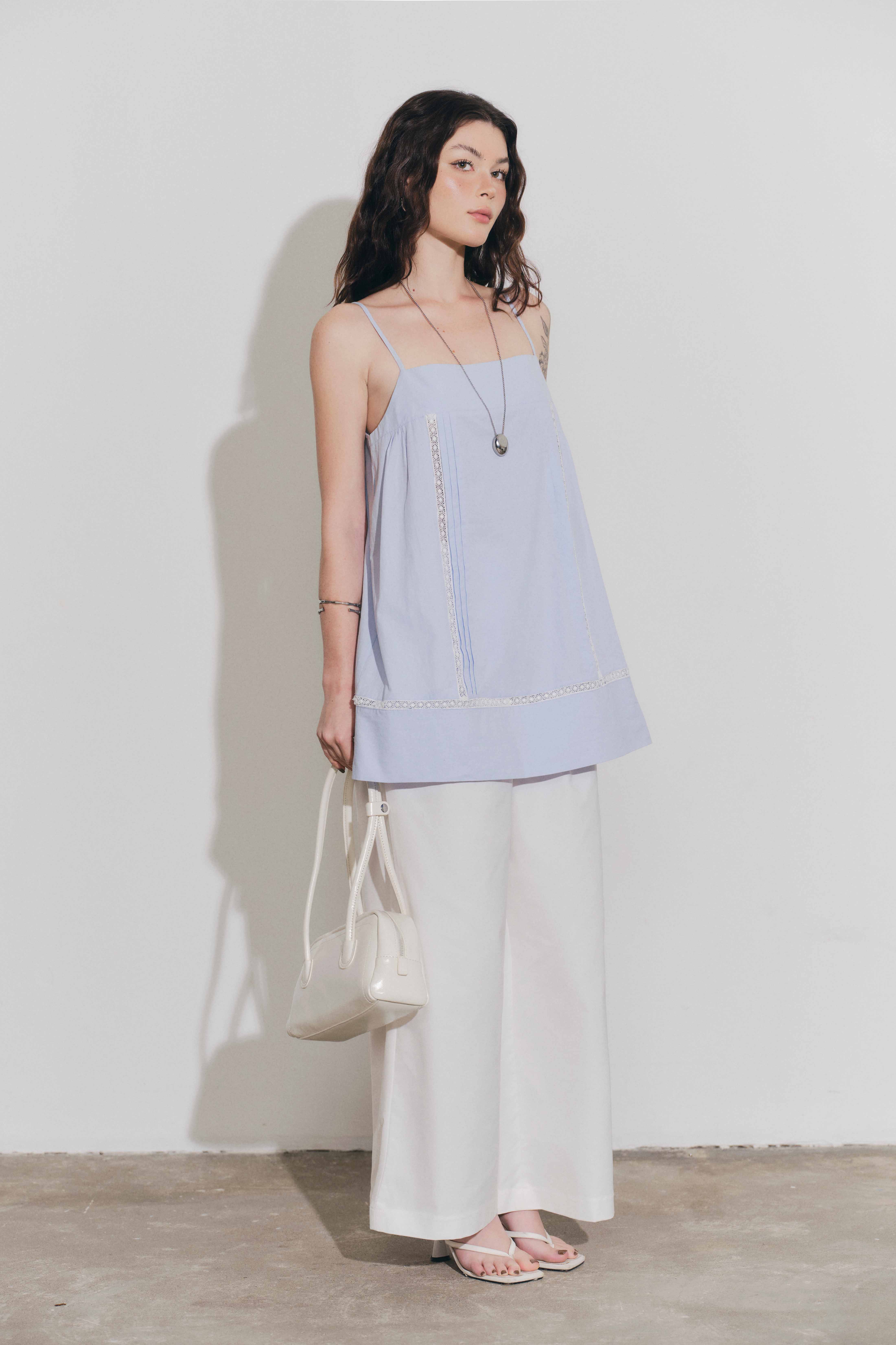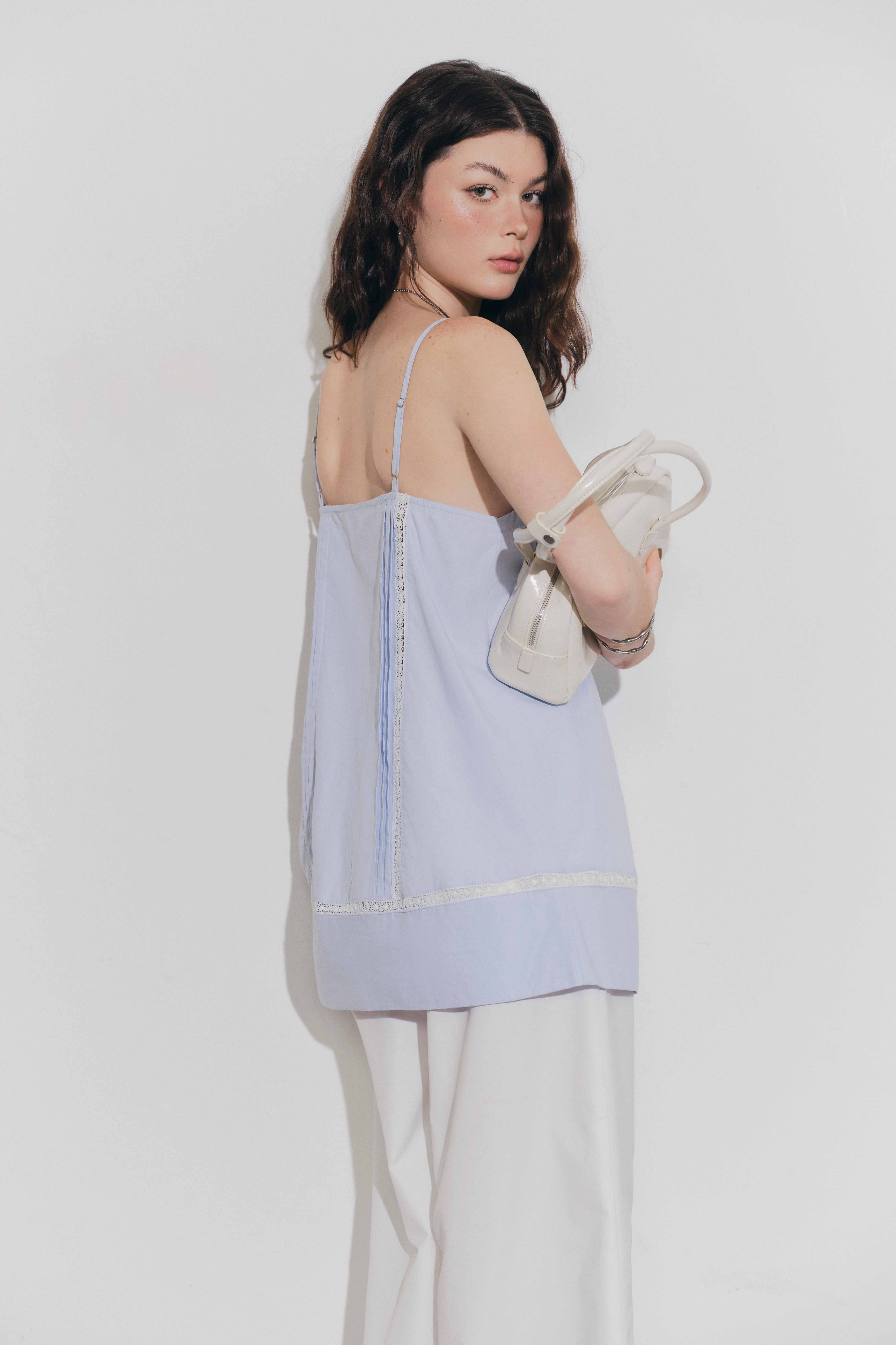 ✨DOTTIE - Áo hai dây phối ren - Xanh biển - T1134
