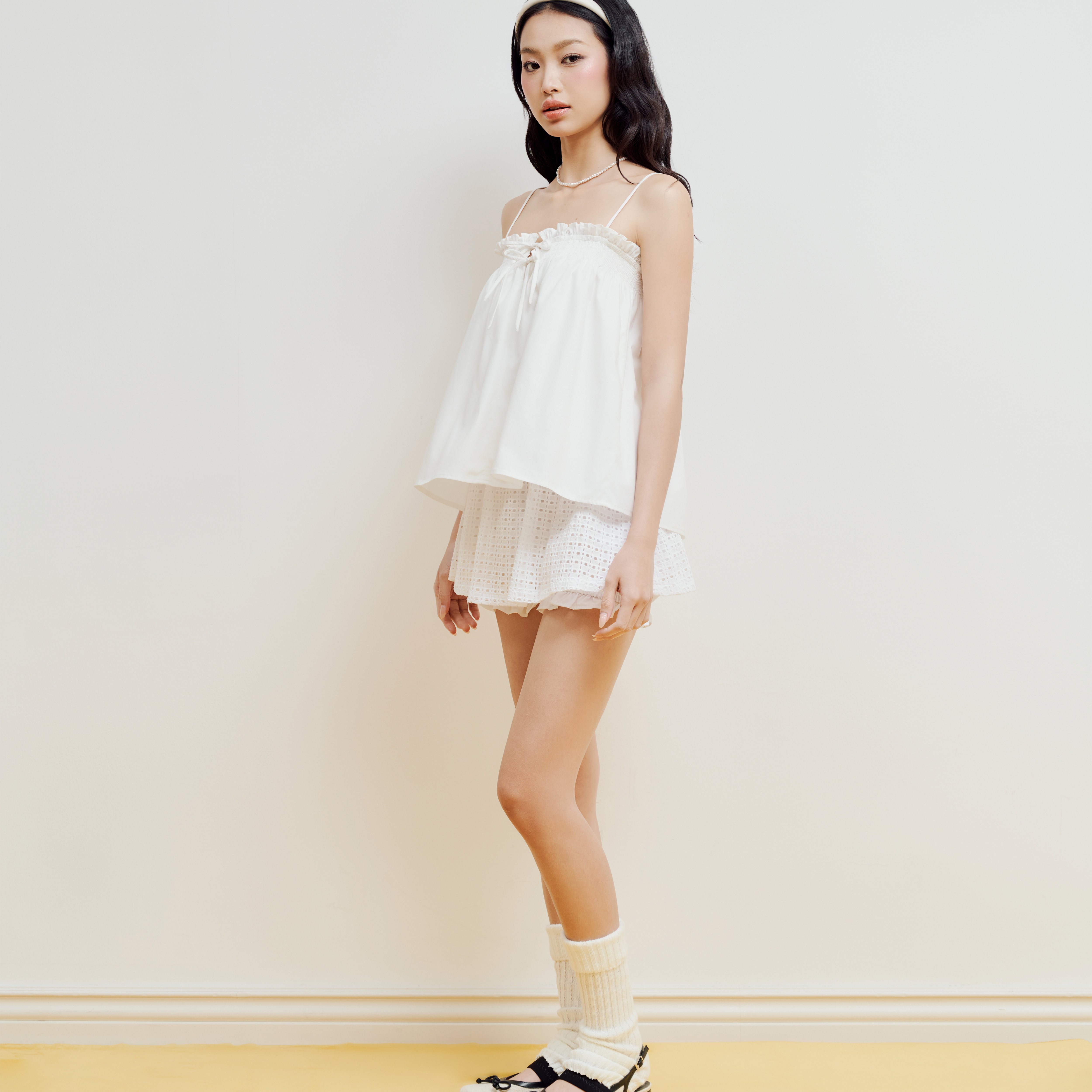 ✨DOTTIE - Chân váy nhún quần bí - Trắng - S0272