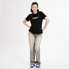 Quần ống rộng wash vàng thêu chữ hottrend
